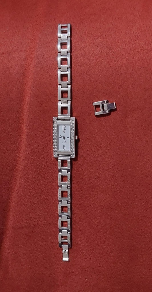 Kaunis ja siro naisten Quartz rennekello Kimaltelevi strassikiviä kellon reunassa Pituus n. 19.5 cm Hihna ja lasi hyvässä kunnossa Paristo just vaihdettu, käy tarkasi aikaa Pitävä lukko